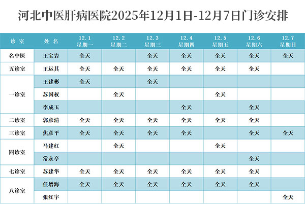 【河北中医肝病医院专家出诊表】2025年12月1日-2025年12月7日