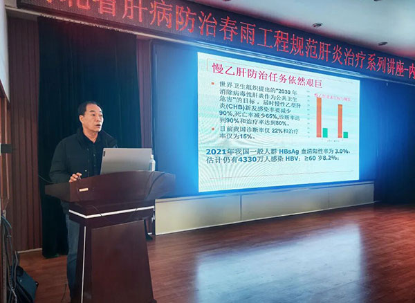 河北中医肝病医院副院长、国家优秀肝胆病咨询专家苏国权教授以《慢性乙型肝炎的诊断与治疗》为主题,对在场的基层医生进行了授课培训。